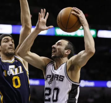 Emanuel Ginóbili efectuó un aporte de 13 puntos en la victoria ajustada que su equipo, San Antonio Spurs, consumó sobre Utah Jazz, por 109-105, en partido de la fase regular de la NBA del básquetbol profesional de los Estados Unidos.