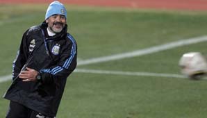 El entrenador de la selección argentina, Diego Maradona, planteó hoy durante el entrenamiento de fútbol un equipo sin Juan Sebastián Verón, por lo que se supone que el capitán de Estudiantes de La Plata no será de la partida frente a México.