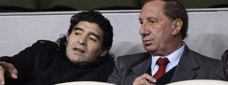 Buenos Aires, 8 de abril.- El cuerpo técnico del seleccionado argentino de fútbol que encabeza Diego Armando Maradona se reuniò en el predio de la AFA, en Ezeiza. Del encuentro, participó el Secretario Técnico de Selecciones Nacionales, Carlos Salvador Bilardo, pero no su estrecho colaborador, Humberto Grondona, quien se retiró del predio instantes antes de la reunión.
