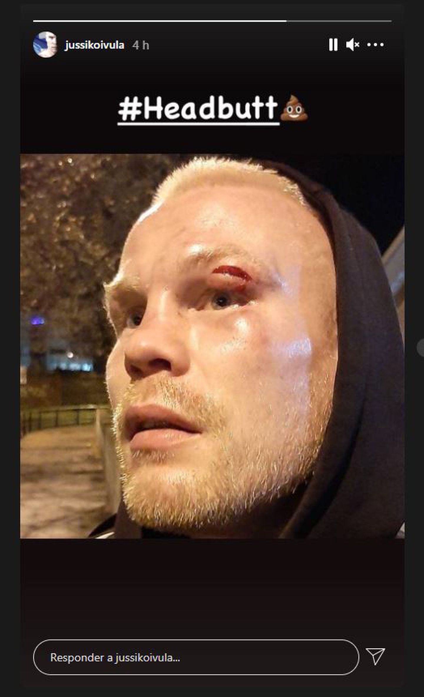 Horas después del combate, Koivula mostró en las redes sociales cómo le había quedado el rostro tras la pelea. “Cabezazo”, escribió en una foto que mostraba casi en primerísimo plano el profundo corte que le quedó tras el choque con el argentino.