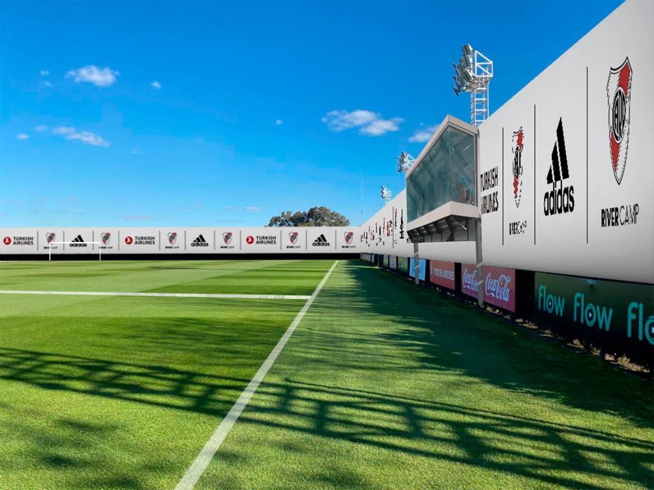 Además de contar con un césped que es envidia de varios de los conjuntos que participan del torneo de Primera División, en la cancha número 1 del River Camp se encuentran cuatro torres de iluminación de última generación, aptas para transmisiones en horario nocturno.
