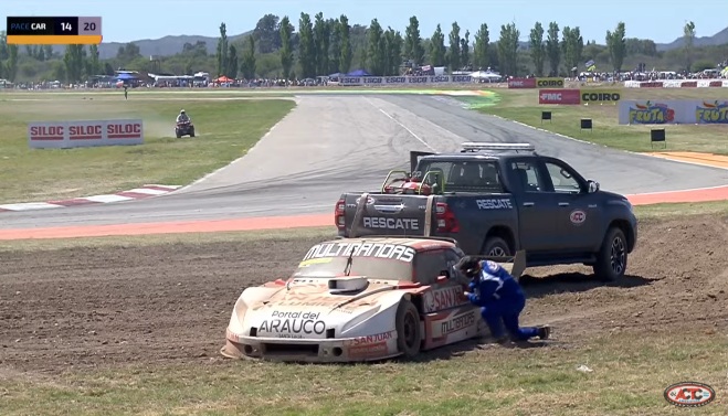 En la cuarta vuelta, Gini pasó a Ardusso y se colocó sexto, y dos rondas después, Canapino empezó a presionar a Ciantini por el sitio de escolta, algo que pudo concretar en el octavo giro. A partir de ahí, la carrera entró en una meseta, pero en el 15° giro, el Auto de Seguridad ingresó para que puedan retirar al Torino de Facundo Della Motta, que quedó en la banquina, y despabiló a más de uno por lo que podía suceder en el relanzamiento.