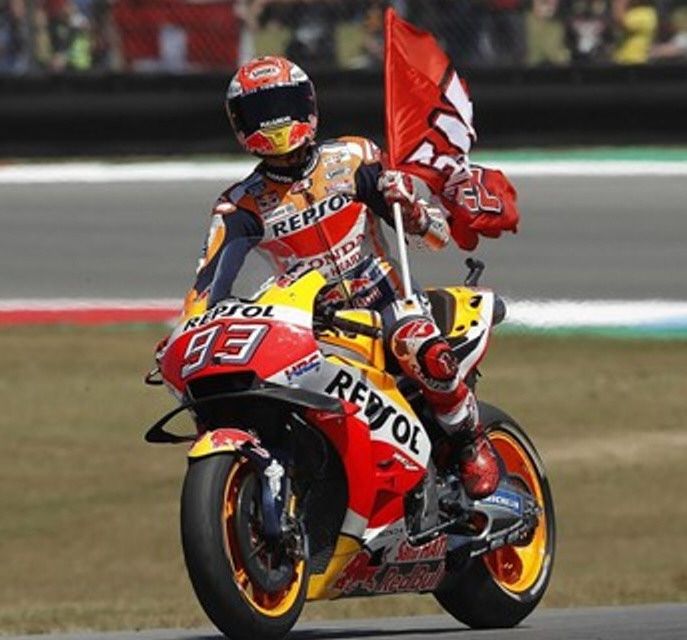 después de imponerse en una vibrante lucha al italiano Andrea Dovizioso (Ducati). Marquez ganó por sexta vez en el año, en una prueba en la que Jorge Lorenzo (Ducati) se fue al suelo en la primera vuelta y abandonó con una luxación en un dedo del pie.