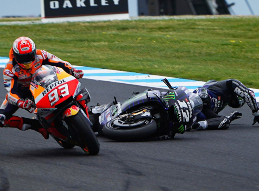 Marc Márquez, el flamante octocampeón del Mundial de Motociclismo, se impuso en el Gran Premio de Australia después de una intensa pelea con Maverick Viñales, quien se cayó a metros de la bandera de cuadros.