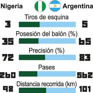 Y fue de Argentina nomás por ese primer tiempo en el que recuperó la memoria del subcampeón del 2014, los de Sampaoli jugaron a lo que tenían que jugarle a un Nigeria al que no se le caían muchas ideas pero que desde su actitud complicaban. Con Banega profundo, lúcido para el primer pase, Argentina fue más desde el comienzo y a los 14′ Ever Banega metió el estiletazo impecable para que un tal Lionel Messi empezara a ser Messi controlando con el muslo, acomodando con su pie izquierdo y definiendo de derecha para poner el 1-0 que encendía la ilusión. Era el gol de todos. El desahogo de un equipo que se autodesgastó desde su vedettismo. Y estaba bien porque en todos los sectores de la cancha era más. Seguro atrás, ágil en el medio y amenazante arriba. Argumentos básicos de cualquier equipo con pretensiones. Fue el mejor momento de Argentina en el Mundial que pudo ser coronado con otro gol de Messi cuando el 10 metió zurda exquisita para un tiro libre que se estrelló en el palo izquierdo del arco de Nigeria. Esa fue la última señal de lucidez del seleccionado argentino porque en los últimos 10′ de ese primer tiempo perdió presencia, dejó crecer a Nigeria y si bien no pasó apuros, dejó abierto otro partido para el complemento. Volvió a ser la Argentina de los dos primeros partidos.