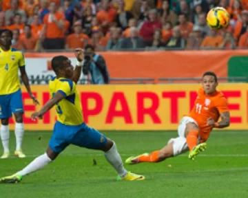 Jefferson Montero puso en ventaja a Ecuador en el minuto 8 y Robin Van Persie anotó el empate para los holandeses en el 36.