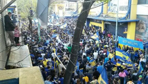 Buenos Aires, 1 de mayo.- Alrededor de dos mil hinchas de Boca realizaron esta tarde un banderazo en la puerta de La Bombonera, en la calle Brandsen 805, para pedir la continuidad de Juan Román Riquelme en Boca.