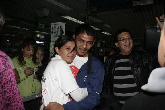 El boxeador llegó cerca de las 20 al aeropuerto Las Chacritas y luego recorrió algunos puntos de la provincia en una autobomba. Unos 50 autos lo siguieron, demostrándole el reconocimiento por haber competido por un título mundial.