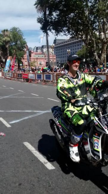 Buenos Aires, 3 de enero.- Luego de la largada oficial de los squad fue el turno de las motos donde los sanjuaninos Puchi Ontiveros y el piloto de DIARIO DE CUYO Mauro Ayesa tuvieron su oportunidad de presentarse en la Plaza de Mayo frente a una multitud que llegó a ese lugar para ver la salida.