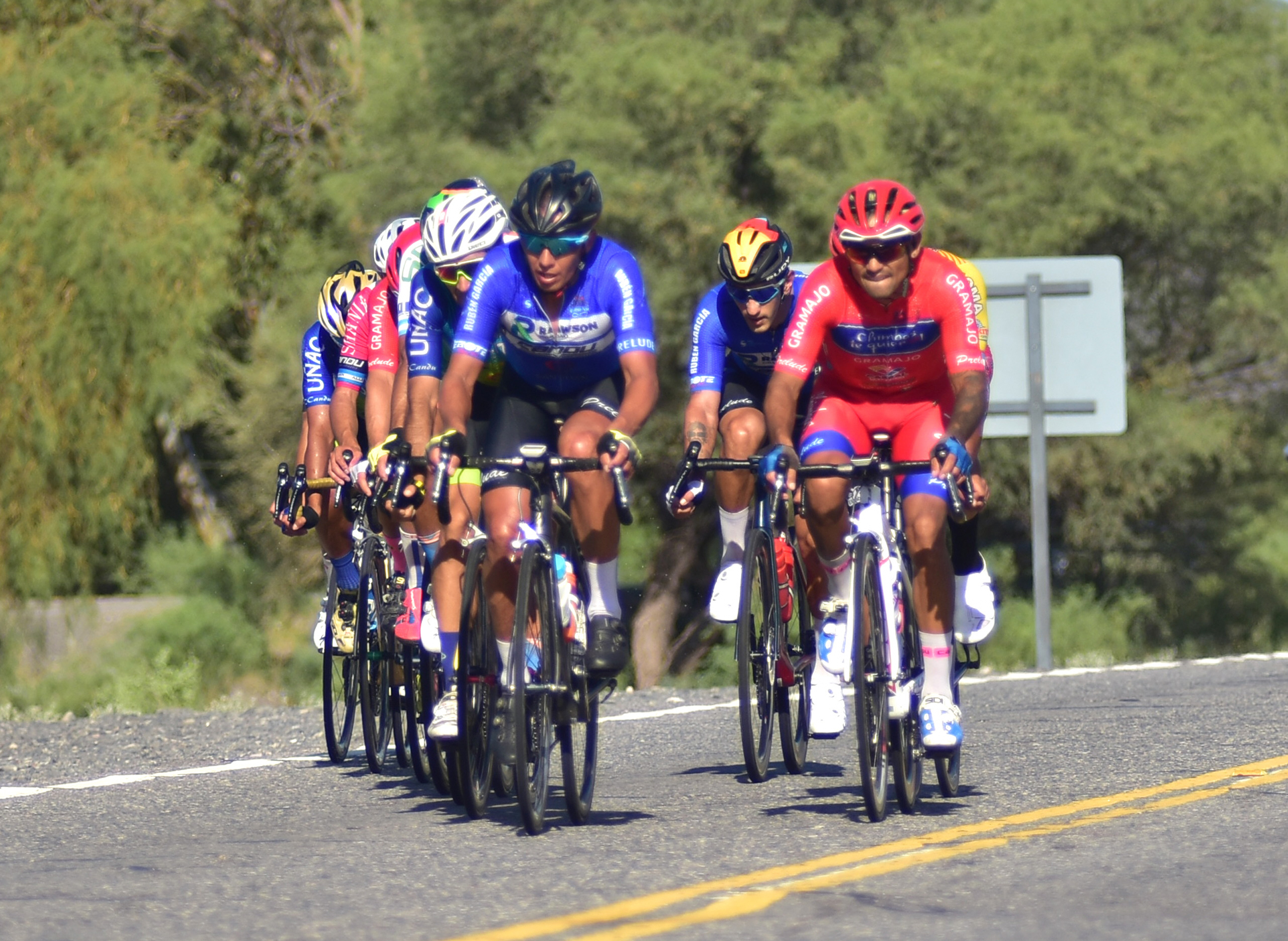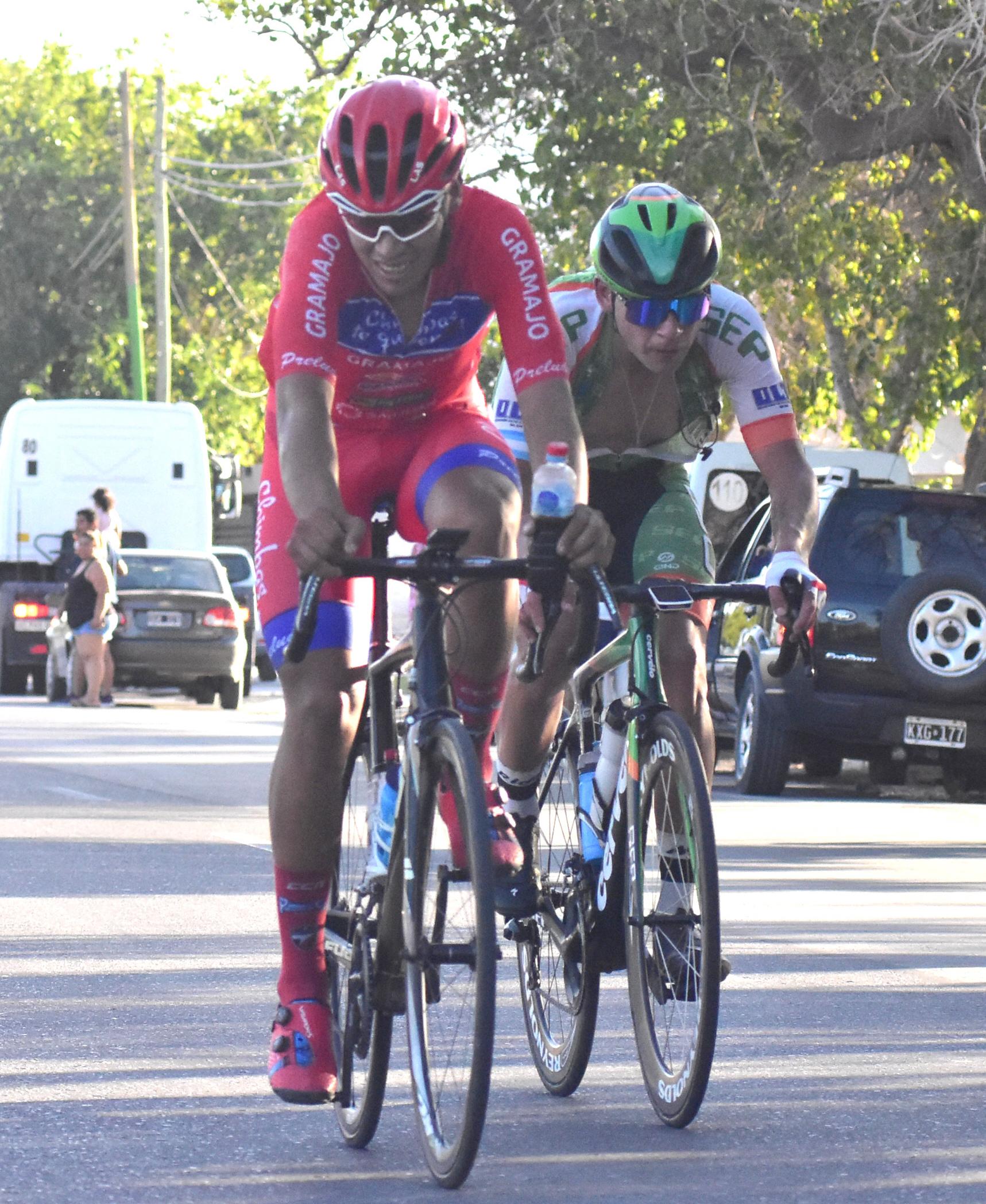 Ya entrando en la recta final de la carrera, Iván Ruiz (Chimbas Te Quiero) y Leandro Velardez (SEP-San Juan) se pusieron al frente de la carrera y sacaron varios segundos de ventaja sobre el resto. El desgaste y el intenso calor, los obligaron a desprenderse los maillots que resultó más que un alivio para los metros finales.