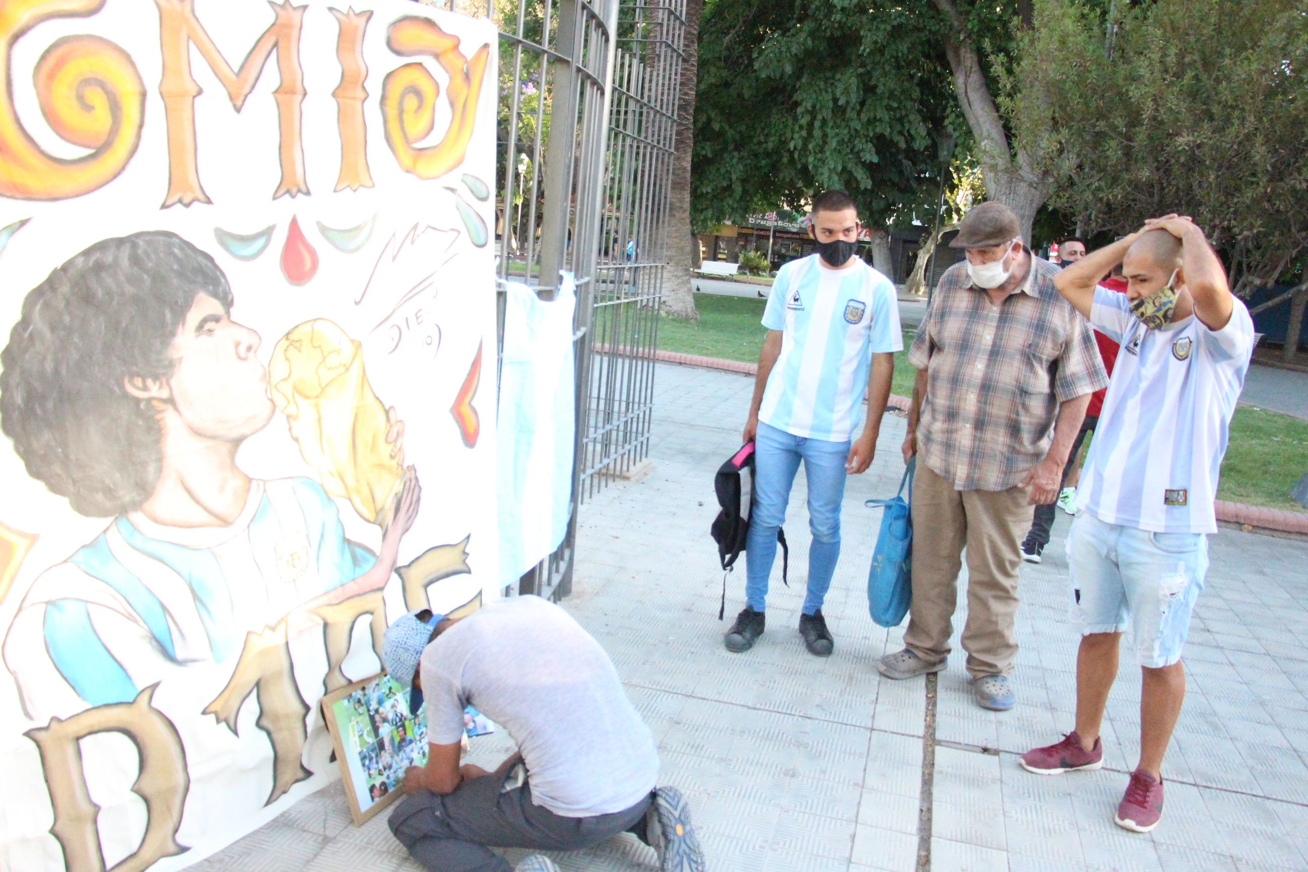 La noticia generó diversas repercusiones de los hinchas de Maradona en todo el mundo y San Juan no fue la excepción. En la Plaza 25 de Mayo, en la tarde del miércoles, se reunieron decenas de personas para armar un pequeño "santuario" con fotos y velas en honor a la trayectoria del excapitán del fútbol argentino.
