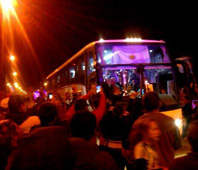 Cientos de hinchas de la selección estuvieron en la intersección de Ruta 40 y la calle principal de la villa cabecera recibiendo a todo el equipo minutos después de las 19.