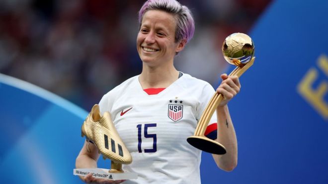 La estadounidense Megan Rapinoe se alzó con el Balón de Oro femenino como reconocimiento a haber sido la mejor futbolista del año.