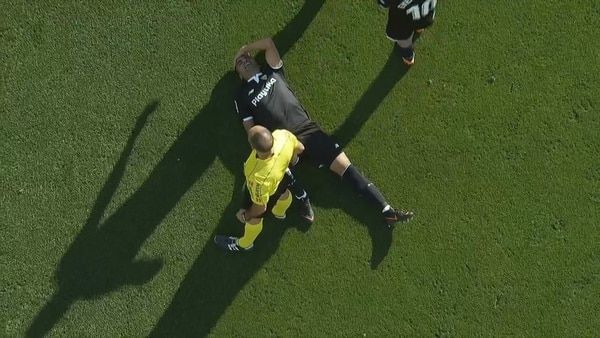 El defensor tuvo que salir del campo en un carrito por un problema en la espalda.