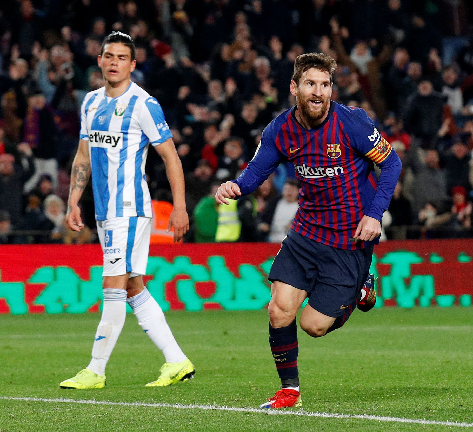 Lionel Messi (foto) convirtió un gol en el triunfo de Barcelona ante Leganés por 3 a 1 en el Camp Nou, en un partido válido por la fecha 20 de la liga española, que lo afianzó como puntero. Messi ingresó a los 19 minutos del segundo tiempo y señaló el tercer tanto del equipo dirigido por Ernesto Valverde. La definición fue con el pie derecho, algo poco común en el rosarino, que motivó las respuestas de sus seguidores en las redes sociales con Pelé como destinatario quien al cierre del año pasado dijo que Lio "solo tiene una pierna". Barcelona manda con 46 puntos, cinco más que el Atlético de Madrid.