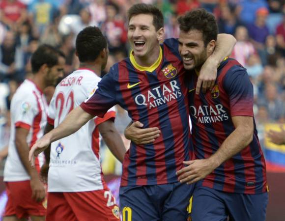 Antes de lesionarse, Messi hizo su gol número 223 en 251 partidos de Liga jugados para Barcelona con un muy lindo zurdazo a colocar desde afuera del área. César Rodríguez anotó la misma cantidad de goles pero en 351 partidos, repartidos entre Barcelona, Granada, Cultural y Deportiva Leonesa, y Elche. En 2012, Messi había desplazado al mismo César Rodríguez como máximo goleador de la historia de Barcelona, cuando alcanzó los 234 goles en todas las competencias. El próximo objetivo de Messi a nivel goles es el hispano-argentino Alfredo Di Stéfano, quien convirtió 227 entre Real Madrid y Espanyol de Barcelona. El máximo goleador de la Liga española es Telmo Zarra, ex Athletic de Bilbao, con 251. El segundo gol de Barcelona ante Almería fue señalado por Adriano a los 11’ del segundo tiempo y la victoria del equipo catalán marcó otro record, al convertirse en el mejor inicio en la Liga en la historia de Barcelona con siete victorias consecutivas, y de la mano del entrenador rosarino Gerardo Martino. Barcelona, que defiende el título, marcha puntero con 21 puntos junto al Atlético Madrid del argentino Diego Simeone, que ayer le ganó el clásico a Real Madrid por 1-0, de visitante.