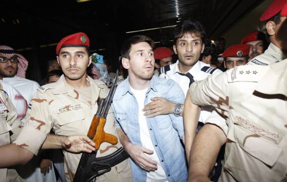 En cuanto a la llegada de Messi, se produjo en medio de un gran operativo de seguridad, que se inició apenas el jugador bajó del avión que lo llevó de Barcelona a Ryad. En el hall del aeropuerto esperaban al jugador muchas personas, algunas de ellas con la camiseta del club catalán o de la selección argentina. A pesar de lo tumultuoso de la situación Messi pudo abandonar el aeropuerto sin problemas para dirigirse al hotel Al Faisaliah, donde lo esperaban Sabella y alguno de sus compañeros. Hoy a las 13 hora argentina, 19 de Ryad, el seleccionado realizará un entrenamiento en el estadio Rey Fahd, donde se jugará el partido, que irá a las 15 de nuestro país.