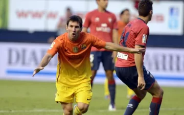El crack rosarino Lionel Messi volvió a darle ayer la victoria a Barcelona, al anotar dos goles para el 2-1 sobre el Osasuna, en partido de la segunda jornada de la Liga de España de fútbol de primera división.