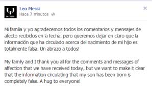 España 5 de octubre.- Tras la catarata de rumores que circularon dentro del mundo del fútbol en el día de hoy, los que indicaban que Lio Messi fue papa, el argentino salió a desmentir todo.