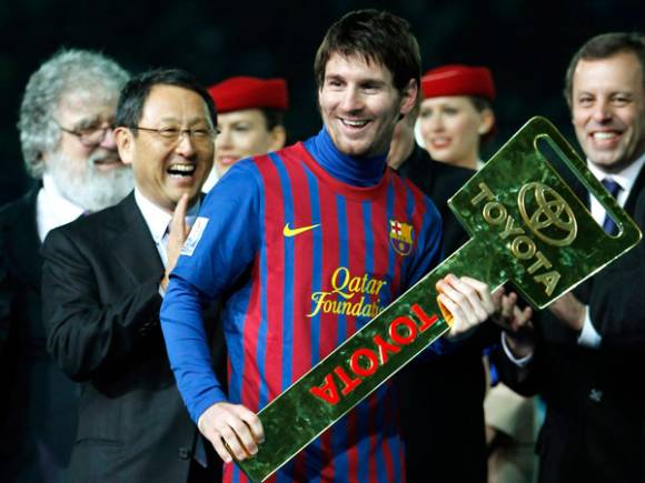 El astro argentino se quedó con el trofeo tras marcar dos goles ante el Santos en la final. Repitió los logros de 2009, cuando el Barcelona venció a Estudiantes de La Plata. "Xavi" y Neymar completaron el podio.