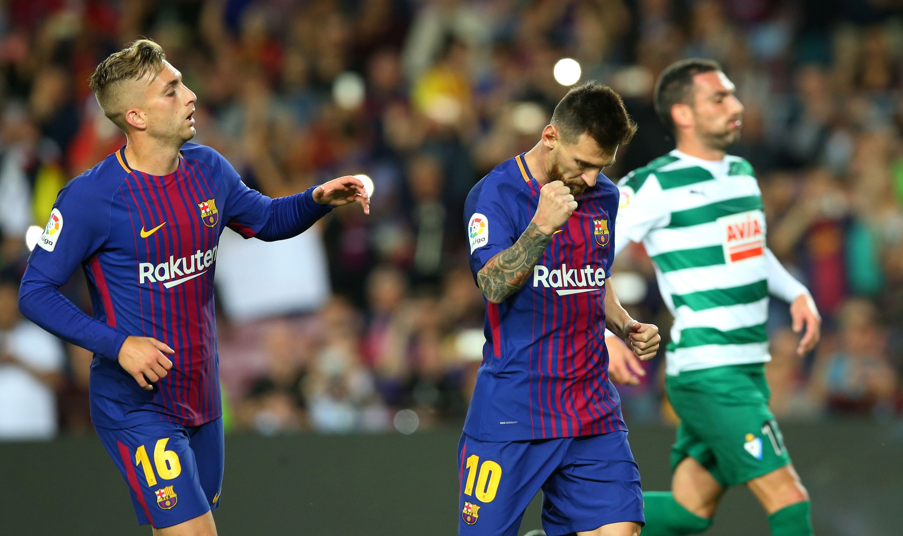 Los goles del argentino, que llegó a 302 en ese estadio, los anotó a los 20 minutos del primer tiempo (de tiro penal), 14, 17 y 32 del complemento mientras que los restantes fueron obra de Paulinho y Denis Suárez, al tiempo que para la visita anotó Sergi Enrich a los 12 de la etapa final.