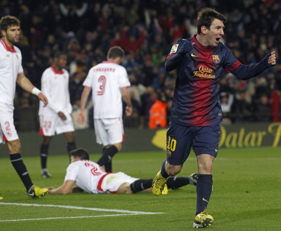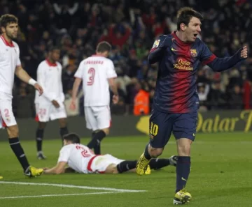 Lionel Messi marcó ayer el segundo gol de Barcelona, que derrotó a Sevilla, por 2-1, de local, y se consolidó en el liderazgo de la liga española de fútbol de primera división tras jugar un partido adelantado de la 25ta. fecha.