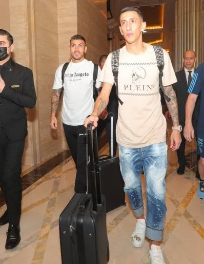 Tan metido está Messi en el Mundial que le hizo un guiño a los hinchas con un detalle especial en su vestimenta: el rosarino llegó con una remera con los colores blanco y celeste y unas zapatillas a tono y demostró que lo único que tiene en la cabeza es el Mundial. Esto no fue algo azaroso ya que sus compañeros, Paredes y Di María, vestían de manera casual.