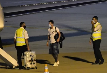 El crack rosarino de 33 años llegó al aeropuerto Ministro Pistarini poco antes de las 8 junto a su esposa y sus tres hijos, se sometió a un hisopado como marca el protocolo sanitario del coronavirus y se dirigió a la concentración argentina, mientras que su familia se trasladó a Rosario.
