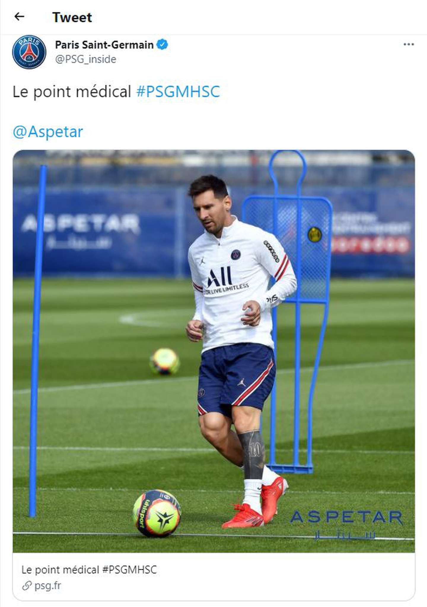 El PSG comunicó este viernes que Lionel Messi será sometido a nuevos estudios médicos el próximo domingo y, por lo tanto, quedó descartado para el partido que el equipo jugará el sábado ante el Montpellier, por la octava fecha de la Ligue 1 de Francia.