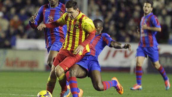 El rosarino, Lionel Messi, no logró ayer lucirse con el Barcelona de Gerardo Martino y su equipo terminó 1-1 de visitante contra el Levante, por la vigésima fecha de la Liga de España. Messi, quien jugó su tercer partido luego del desgarro que sufrió en noviembre de 2013, fue titular y no consiguió anotar, pese a que tuvo una clarísima posibilidad.