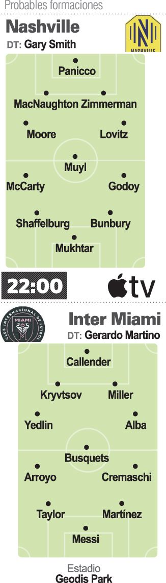 El partido, transmitido por Apple TV, se disputará desde las 22 horas de Argentina en el estadio Geodis Park, con capacidad para 30.000, situado en el estado de Tennessee, región Centro Sureste de los Estados Unidos.