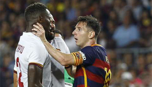 En un partido correspondiente al Trofeo Joan Gamper entre el Barcelona y la Roma, la Pulga se cruzó feo con Mapou, central rival, y reaccionó duramente. Mirá el video.