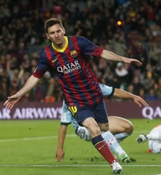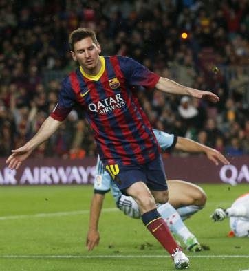Lionel Messi consiguió ayer uno de los tantos del Barcelona, que derrotó claramente a Celta, por 3-0, en uno de los adelantos de la 30ma. fecha de la Liga de España. El rosarino llegó a 22 tantos en 23 partidos en lo que va del certamen y quedó con 237 tantos en la historia de Liga, situándose a 14 del máximo anotador, Telmo Zarra, que obtuvo 251, entre 1912 y 1929. El equipo de Gerardo Martino sufrió la grave lesión de su arquero titular, Víctor Valdés, quien se rompió los ligamentos cruzados de la rodilla derecha, se perderá el resto de la temporada y el Mundial con España. El Barcelona quedó a un punto del único líder, el Atlético de Madrid (superó 1-0 al Granada), y dos por encima del Real Madrid, que ayer perdió de visitante 2-1 ante el Sevilla.