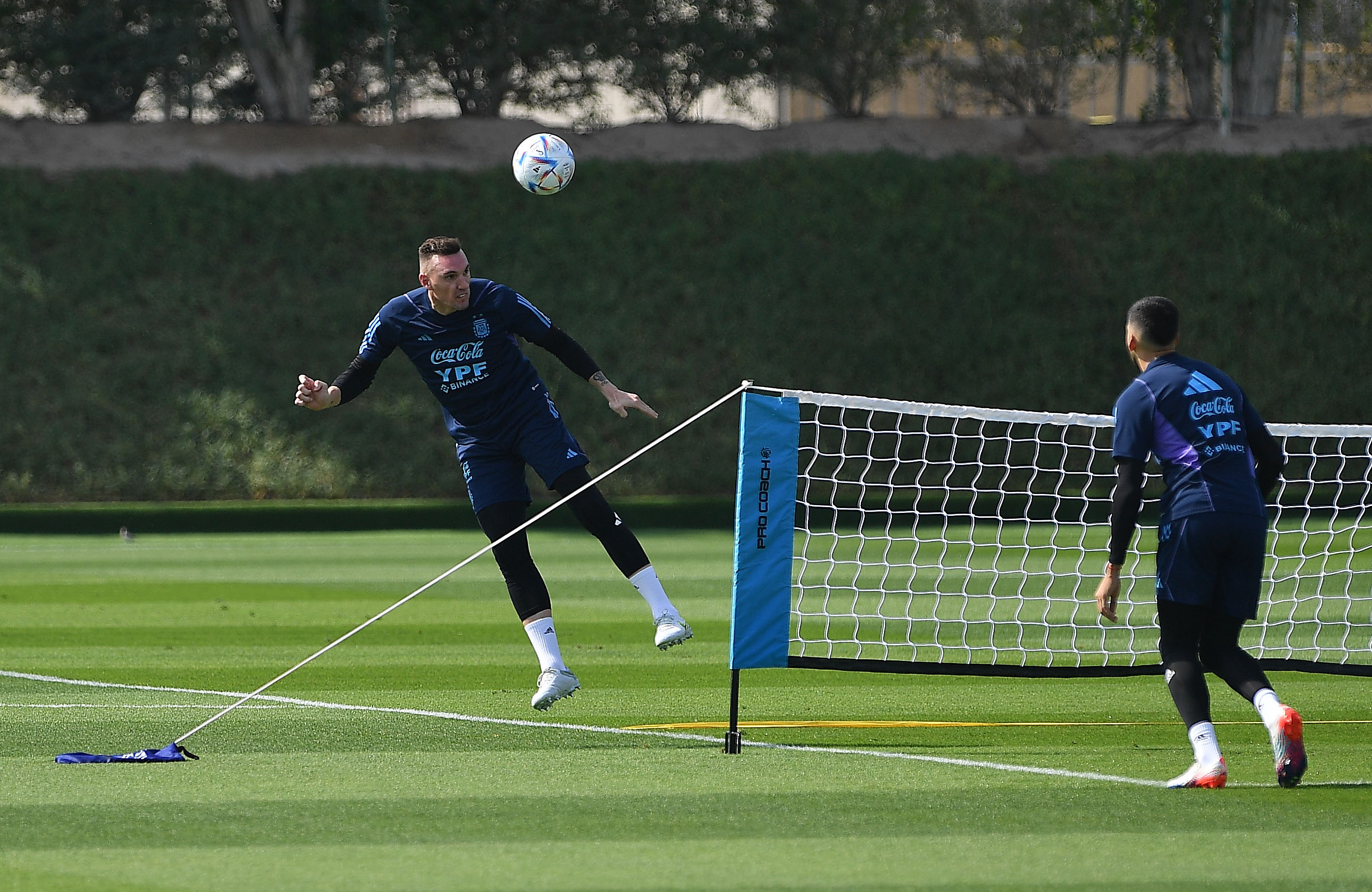 El goleador salió a la cancha de entrenamiento de la Universidad de Qatar pasados los primeros diez minutos de la práctica inicada a las 5.00 (11.00 de Qatar), pocas horas después del triunfo en el Estadio Lusail.