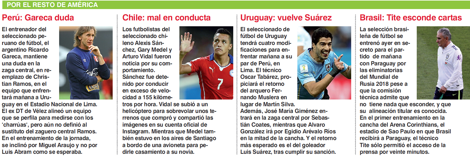 Tras la confirmación de la ausencia del defensor sanjuanino Emmanuel Mas (ver recuadro) la noticia más importante que generó la doble jornada de entrenamientos del seleccionado argentino en el predio de Ezeiza, fue la conformación del equipo que paró en la cancha el técnico Edgardo Bauza. El ‘Patón’ utilizó un esquema 4-4-2 para visitar a Bolivia, en los 3.600 metros de altura de La Paz.