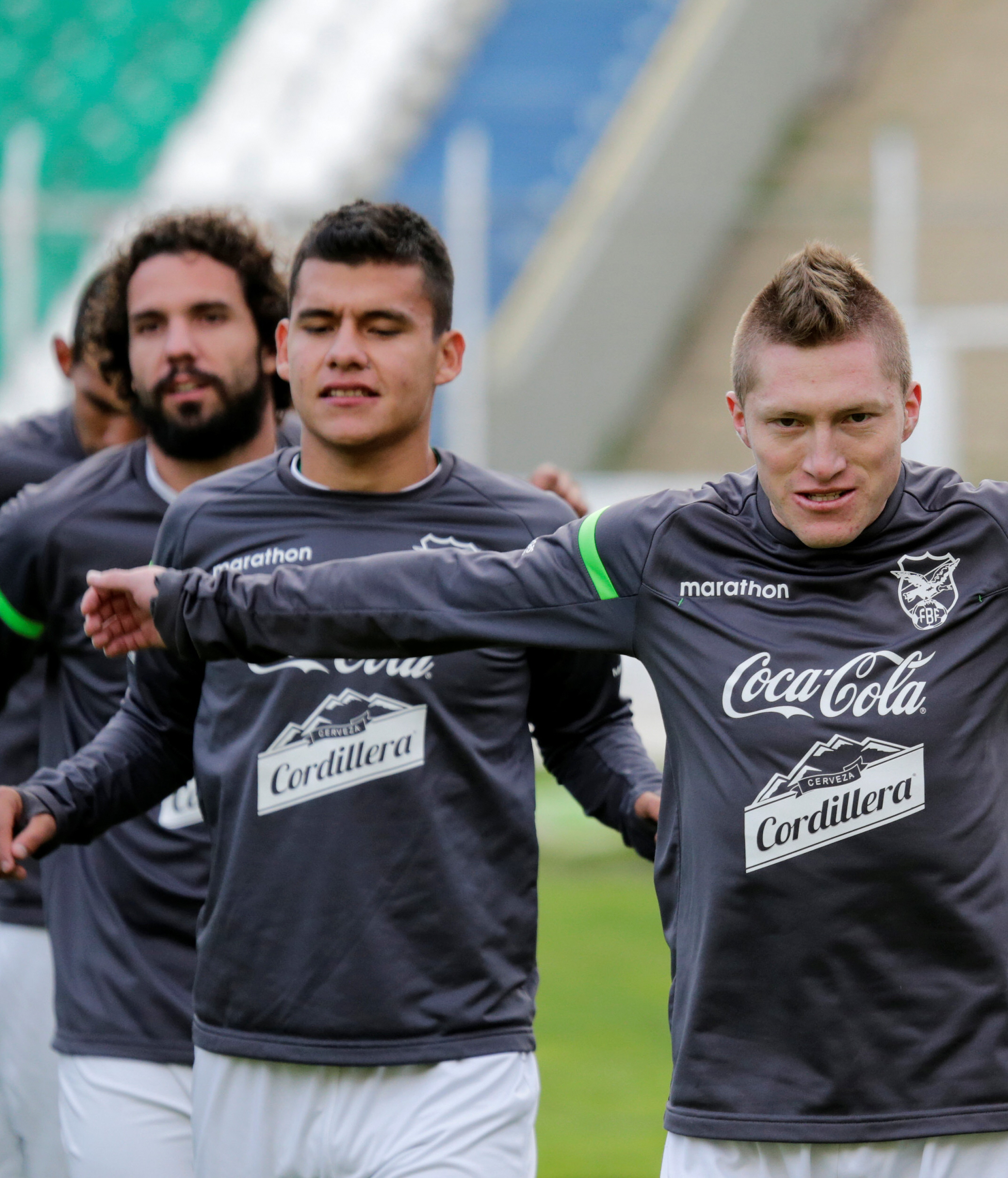 Los jugadores bolivianos entrenaron ayer en La Paz. La idea es presionar a Argentina y contragolpearlo.