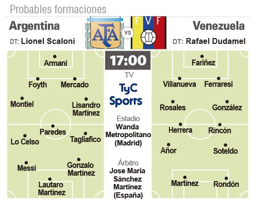 El partido se jugará este viernes desde las 17 en el estadio del Atlético de Madrid, el Wanda Metropolitano, donde Argentina fue goleado 6 a 1 por España el 27 de marzo de 2018, y será televisado por TyC Sports.