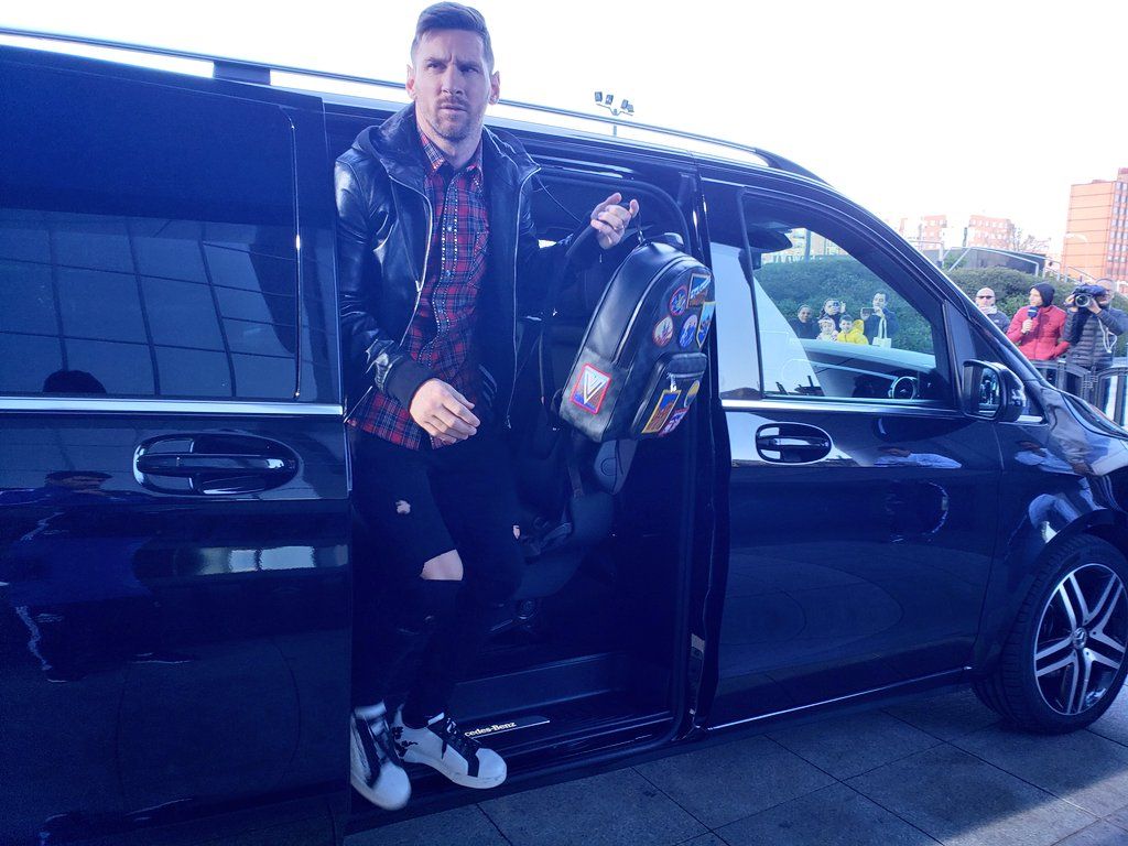 Tras su triplete de golazos ante Betis, el astro rosarino arribó en este mediodía español al hotel donde se hospeda el equipo dirigido por Lionel Scaloni.