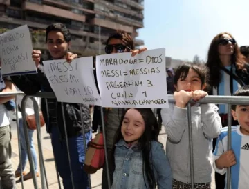 Cuando arribó al hotel junto a sus compañeros, Messi, escoltado por un integrante del seleccionado argentino y por tres carabineros, recibió la mayor ovación de los 60 hinchas que se acercaron a las puertas del edificio que está sobre la calle Vitacura en la localidad de Los Condes, bajo un día soleado.