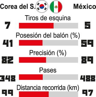 En todos los ámbitos de la vida, también y fundamentalmente en el fútbol, el azar tiene un peso importante. Los asiáticos, encerrados atrás y saliendo al contraataque, pusieron en peligro a la defensa mexicana por las bandas, hasta que a los 18 minutos Hyun-soo, zaguero central surcoreano, regaló un penal al lanzarse a cortar un centro con las manos muy abiertas. El balón le golpeó en su brazo derecho y el árbitro serbio Miroslav Razic no dudo en marcar el penal. Carlos Vela abrió el marcador. De allí en más los dirigidos por el colombiano Juan Carlos Osorio mostraron todo su repertorio de un fútbol de toque, dinámica y efectividad que le permitió ponerse 2-0 con un gol de su figura, "Chicharito" Hernández, perder varios goles más y darse el lujo de recibir un tanto en el alargue, cuando su victoria no corría riesgos.