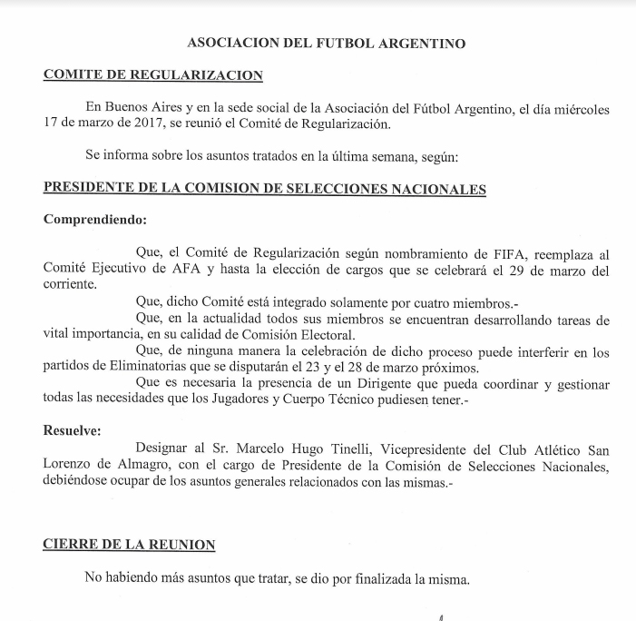 En horas de la tarde, desde la Asociación del Fútbol Argentino confirmaron que Marcelo Tinelli será presidente de la Comisión de Selecciones Nacionales, mientras que el sanjuanino seguirá siendo Secretario de Selecciones. "Esta tarde estuve hablando con Tinelli y mañana voy a ir al predio. Vamos a trabajar en conjunto en esta doble jornada de Eliminatorias", señaló Miadosqui en diálogo con DIARIO DE CUYO. "Tiene muchas ganas y necesita saber cómo se trabaja en fechas FIFA", agregó.