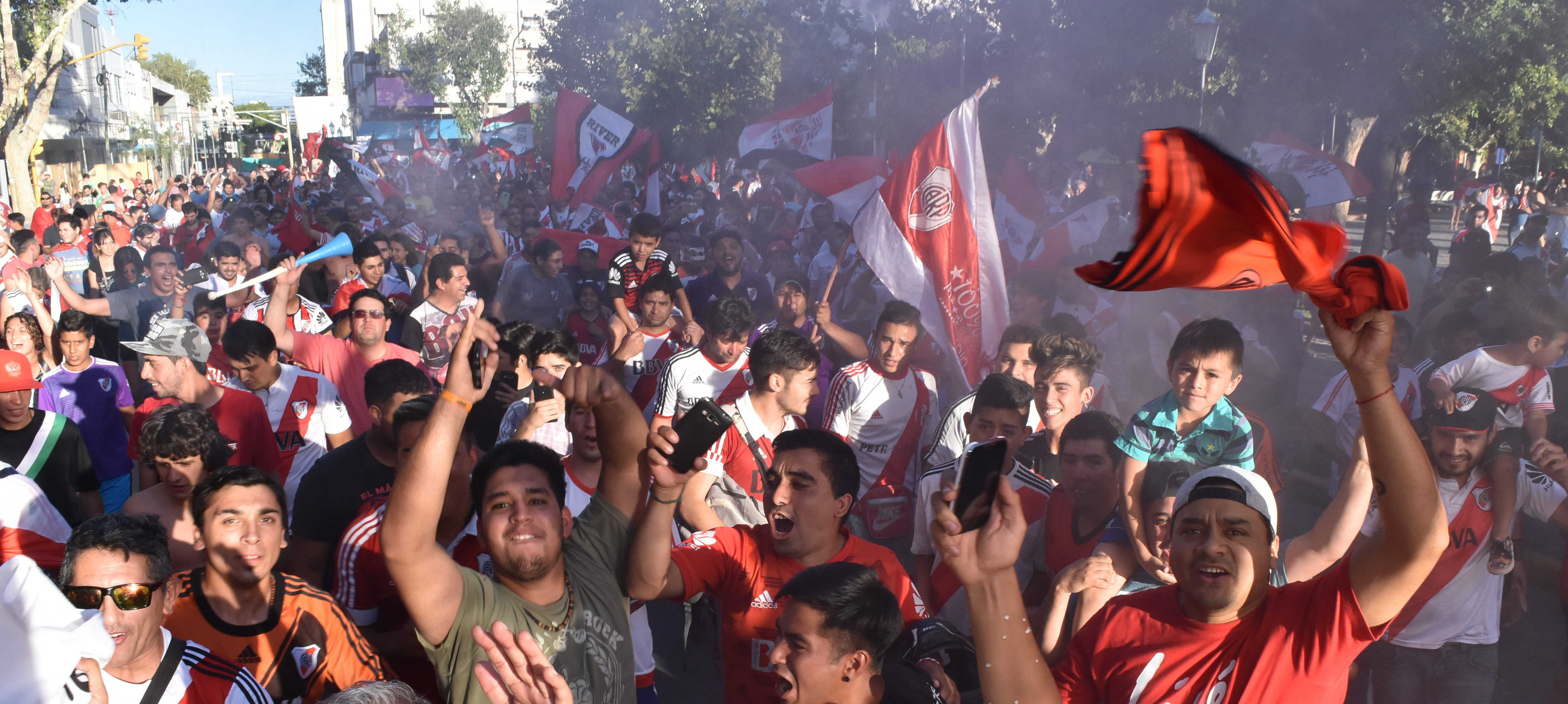 No se cansaron de girar a la Plaza 25 dando, simbólicamente, la vuelta olímpica. Apenas terminó el partido en el que River se consagró campeón en la Libertadores, los hinchas del "Millo" comenzaron a copar las calles céntricas para celebrar la consagración. Los hinchas de Boca que estaban en los cafés cercanos a la plaza central rápidamente emprendieron la desconcentración para dejar que sus pares se despacharan en festejos. Con el paso de los minutos fueron llegando cada vez más y la algarabía se extendió durante horas. El clásico hit "ya se acerca Nochebuena, ya se acerca Navidad, para todos los bosteros el regalo de papá…" sonó a más no poder en las calles del microcentro que debieron ser cortadas por varias horas. Hacía tiempo que la Plaza 25 no era epicentro de festejos por eso ayer la Policía de San Juan montó un importante operativo policial para que no se registrara ningún tipo de incidentes y así fue. Los millonarios festejaron un título histórico pero en paz.
