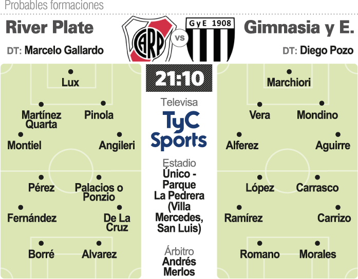 Con la llegada de Pozo, ex arquero de Colón y Huracán, el club incorporó a Brian Alferez, Iván Ramírez, Lucas Carrizo y Renzo Vera. Por el lado de River, Gallardo solo tendría una sola duda y es en el mediocampo, donde pelean por la titularidad Exequiel Palacios y Leonardo Ponzio. River y Gimnasia volverán a enfrentarse de manera oficial luego de más de cuarenta años. Los cuatro partidos registrados se jugaron en los torneos Nacionales de 1970 y 1975. En los primeros dos encuentros, en 1970, se alternaron los triunfos entre River (2-1) y Gimnasia (2-1). En 1975, empataron el primer partido en Mendoza y después el "millonario" se impuso por 2-0 en Buenos Aires.
