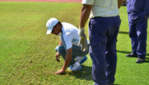 Dertycia convocó a los periodistas al estadio mientras máquinas seguirán trabajando para recuperarlo, momentos después de que el plantel de Bolivia realizara el reconocimiento de rigor y que el volante Alejandro Chumacero admitiera que la cancha está ‘dañada‘.