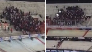 Buenos Aires, 23 de septiembre.- Durante el primer tiempo del partido entre River e Independiente se vivieron momentos de tensión, todo como consecuencia de una vieja disputa entre Los Borrachos del Tablón y una de sus facciones disidentes: La Banda del Oeste, que pretende el dominio total de la barra brava de River. Pero eso no quedó ahí. Después del partido, ambas barras se quedaron en el estadio y de una tribuna a la otra se amenazaron como muestra el video.