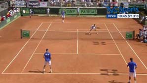 Los argentinos Juan Martín Del Potro y Guido Pella se miden ante los italianos Fabio Fognini y Paolo Lorenzi en el partido de dobles que se juega en Pesaro, como tercer punto de la serie que ambos países empatan 1-1 por los cuartos de final del Grupo Mundial de la Copa Davis de tenis.
