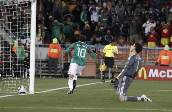El seleccionado de México derrotó por 2-0 a Francia, con goles de Hernández y Blanco, de penal, en un partido correspondiente a la segunda jornada del grupo A, que se jugó en el estadio Peter Mokaba, de Polokwane. La victoria de los mexicanos resultó inobjetable, no tanto por lo bueno realizado por los hombres de Aguirre, sino porque lo de los dirigidos por Domenech, sobre todo en el segundo tiempo, fue de un nivel paupérrimo.