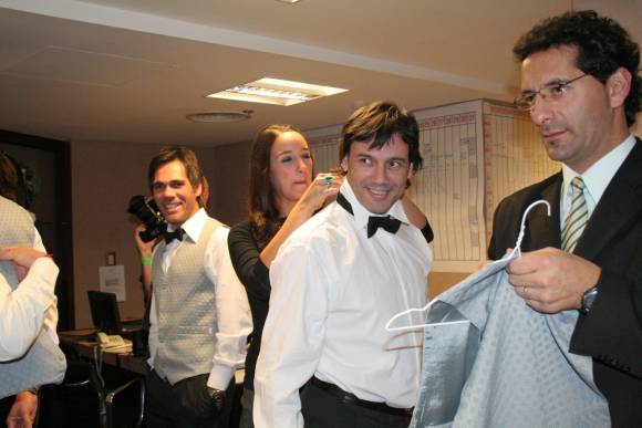 "¿Acá buscan mozos?", dijo Pechito al ingresar a una sala donde los pilotos se estaban cambiando. "No, buscan buenos mozos", le respondió Smith. La previa fue de lo más divertido. "Una vez usé moño, para mi casamiento. Pero lo que me preocupa es que se me bajen los pantalones, porque son prestados", bromeaba Henry. En general, casi todos los pilotos se sorprendieron al ver a los otros con pantalones de vestir, camisa y zapatos. "Cómo será, que sólo uso estos zapatos cuando voy a un casamiento", dijo Flaqué.