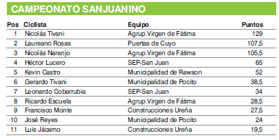 El sanjuanino Francisco Monte terminó realizando una gran Vuelta a San Juan. El ciclista que corrió la Vuelta representando a la Selección argentina tuvo gran protagonismo en las etapas, buscando la fuga e integrando los cortes como sucedió ayer cuando se desprendió del pelotón en el inicio de la competencia y pudo palpar de cerca el aliento de la gente. Es que esa fuga la integraron mayoría de ciclistas de equipos sanjuaninos y el público eufórico los alentó a más no poder. "Salió una linda Vuelta, no me esperaba tener el rendimiento que tuve. La idea era tener un buen rendimiento al principio de temporada, después Omar Contreras me convocó a la Selección y terminé muy contento por la chance y por haber dado todo", comentó quien en la temporada sanjuanina defiende los colores del equipo Construcciones Ureña. "Es increíble lo que sentí hoy cuando iba adelante y la gente me alentaba, me hizo poner la piel de gallina", agregó.