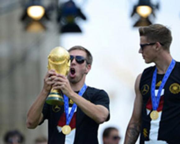 Buenos Aires, 16 de julio.- Seis jugadores del seleccionado alemán dieron la nota este martes durante el festejo que hicieron en el centro de Berlín al parodiar la actitud de derrota de los argentinos que perdieron la final de la Copa del Mundo. Ante una multitud, marcaron la diferencia entre el andar con frente en alto que adjudicaron a los vencedores con un paso encorvado que atribuyeron a los "gauchos", broma que acompañaron con una breve canción.